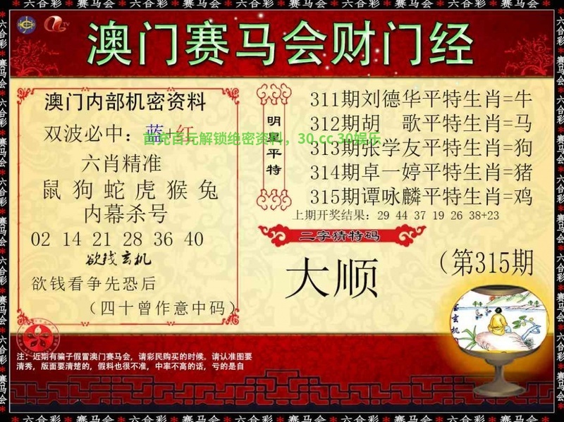 315期:单双两肖双肖+猪兔╣开:虎04准